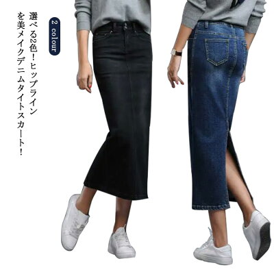 スリット 夏 フレアー レディース ストレッチ 無地 スカート タイトスカート ビジネス バックスリット 春 ハイウエスト デニムロングスカート 痩せ見え ロング丈 マキシ丈 OL 通勤 H型 ペンシルスカート オールシーズン デニムスカート
