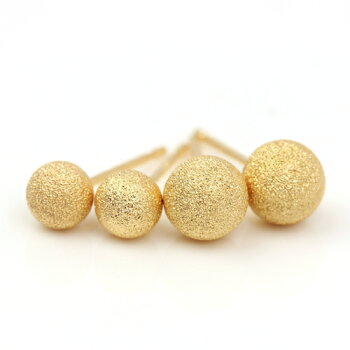 )星屑のような輝き! K18/K14カラーゴールドピアス・キスティキス 【こちらは4ミリのページです】 星屑をちりばめたピアス・・!? 宝石をカッティングすることで生まれる まぶしい煌きもいいけれど、 夜空に浮かぶ星屑をちりばめたような、 こんな満天の輝きはいかが・・? ゴールドのまあるい18金のボールに ダイヤモンドを使って表面に刻みをつけていくことで、 ラメのような繊細な煌きを生み出す ダイヤモンドダスト加工をほどこして、 ピアスをおつくりしました! シンプルなフォルムが素肌によくなじみ、 日常使いにぴったりです。