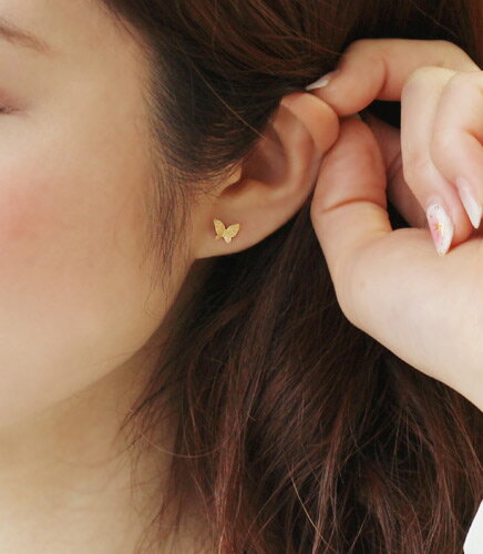 スターダスト加工 【NEW】鏡面加工 材質 K18イエローゴールド 大きさ 蝶モチーフ:約5.5×7.2mm キャッチ K18イエローゴールドダブルロックキャッチ(素材:シリコン/地金) ポスト部分 長さ 12mm、太さ 0.8mm お届けする商品について 商品写真はできる限り実物の色に近づくよう補正調整を施しておりますが、デバイスや照明等の環境により、実物とお色味が異なる場合がございます。