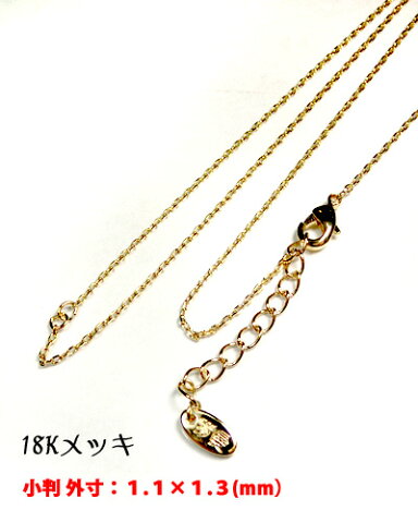 [1本]ネックレスチェーン 小判 外寸:約1.1×1.3mm 45cm+アジャスター約3.5cm(ゴールド)【18k 18金メッキ】