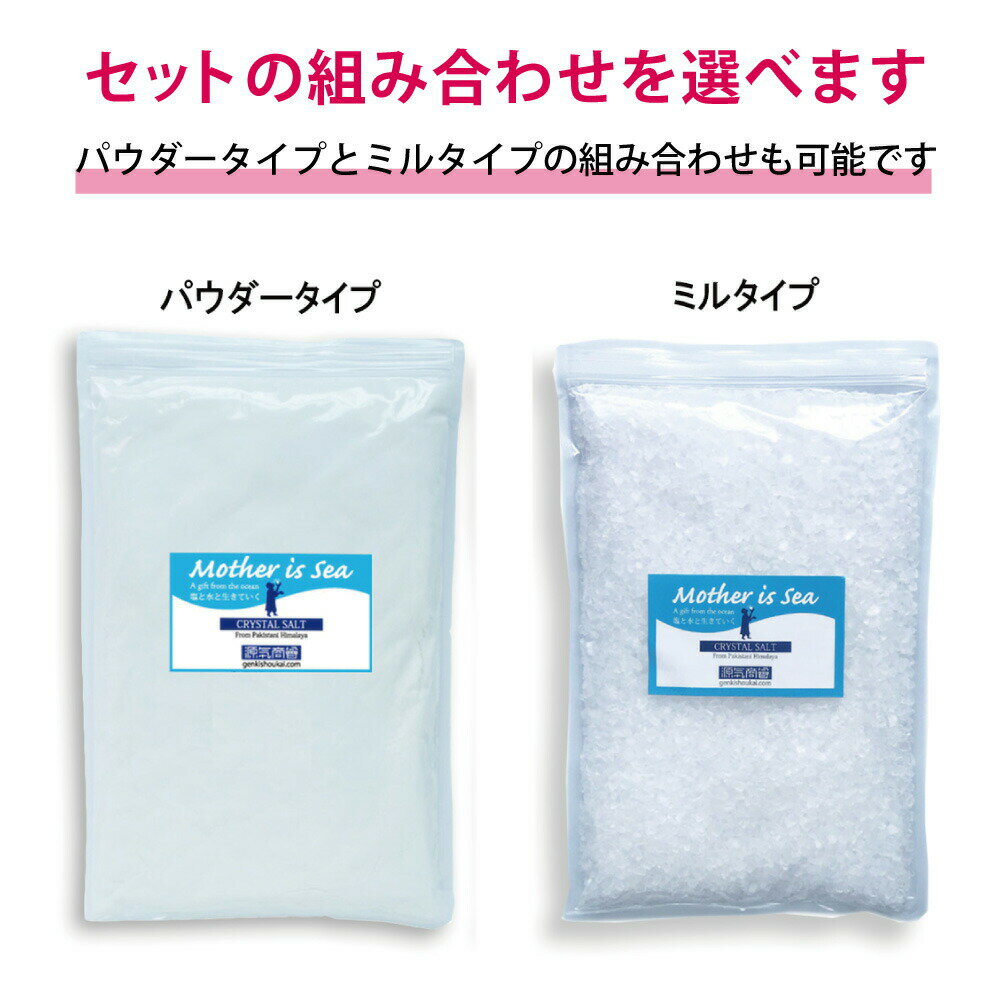 ヒマラヤ岩塩 クリスタルソルト 透明 パウダー&ミルタイプ 各1袋 合計500g パウチ 個包装 | 源気商会 パキスタン 無添加 高級塩 食用 塩水療法 メール便送料無料セット 【250g×2個セット】