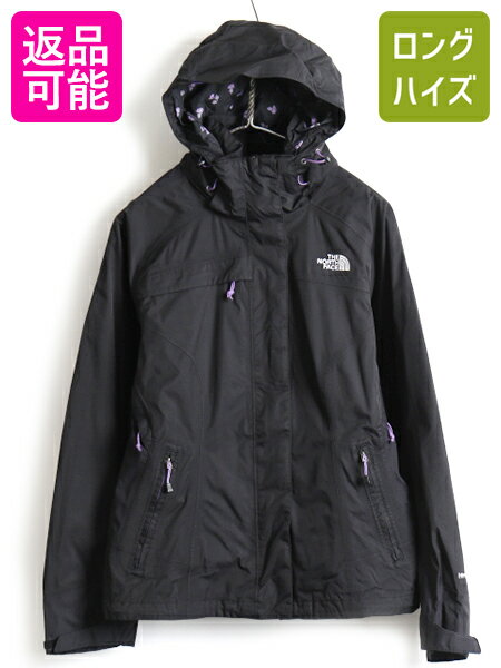 US企画 人気 黒 ■ ノースフェイス Hyvent 総柄 ライナー付き マウンテンパーカー ジャケット ( レディース M )古着 The North Face マンパ| 中古 古着 日本未発売 アウトドア ノース ナイロンジャケット ジャンパー ブルゾン ワンポイント ブラック ハイベント フルジップ