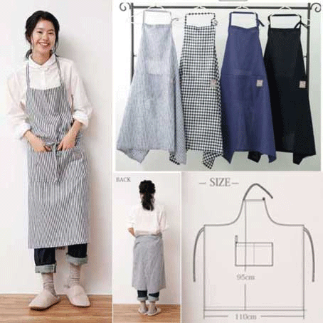 リネン(綿麻混紡)エプロン 素材:麻55%綿45%色:ネイビーストライプ・ブラックチェック・デニムブルー・モカブラウン・ブラック無地・ブルーグリーン・スモークピンク サイズ:Mサイズ バスト79〜94cm、身長154〜162cm フロント紐自由調節。